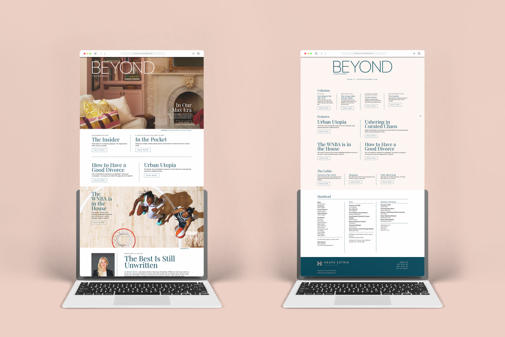 Translating print media to digital necessitates re-thinking your approach to storytelling. The limitations of web design often mean that content needs to be explored from a new perspective. The goal for BEYOND was to maintain the overall sophisticated look of the recent rebrand and translate it to the web in a way that kept the leisure flow of reading a print magazine. To achieve this, I restructured the magazine slightly, created a dramatic landing page, and incorporated movement through video affects and animation.
